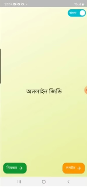 তারপরে এপসটি ওপেন করে উপরের চিত্রের মত দেখতে পারবেন তখন নিবন্ধন এবং লগইন দুইটা বাটন দেখতে পাবেন। এখন আপনি যেহেতু নতুন তাই আপনাকে প্রথমে নিবন্ধন করতে হবে তাই নিবন্ধন বাটনে ক্লিক করুন।