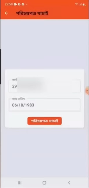 এরপরে এন আইডি নাম্বার ও জন্ম তারিখ সব ঠিক থাকলে পরবর্তী বাটনে ক্লিক করুন