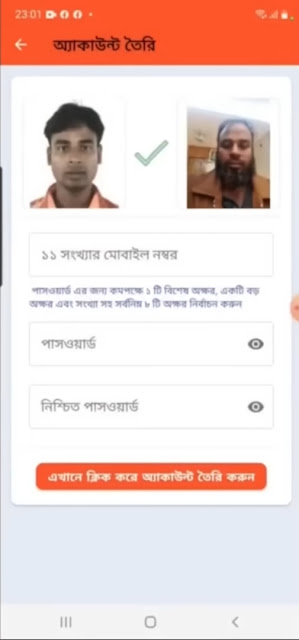 মোবাইল নাম্বার দেয়ার পর একটা পাসওয়ার্ড দিবেন অবশ্যই পাসওয়ার্ড টিতে কমপক্ষে 1 টি বিশেষ অক্ষর (যেমন @#£) দিতে হবে, একটি বড় হাতের অক্ষর (ক্যাপিটাল লেটার) সহ যে কোন একটা সংখ্যা দিয়ে সর্বনিম্ন 8 টি অক্ষরের পাসওয়ার্ড দিন।