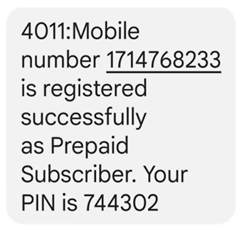 তারপর উপরের ছবির মত একটি এমএমএস আসবে এখানে একটি পিন নাম্বার থাকবে এবং এটি খুবই গুরুত্বপূর্ণ।