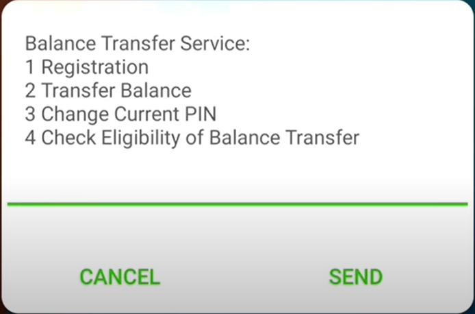 তারপর উপরের ছবির মত আসলে 1 Transfer Balance মানে 1 প্রেস করে সেন্ড করুন।