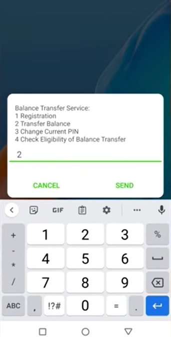 তারপর উপরের ছবির মত আসলে 2 Transfer Balance মানে 2 প্রেস করে সেন্ড করুন।