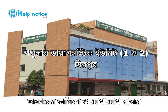 Popular Diagnostic Mirpur (Unit- 1 & 2) Doctors list & Contact Number পপুলার ডায়াগনস্টিক ইউনিট (1 ও 2) মিরপুর ডাক্তারের