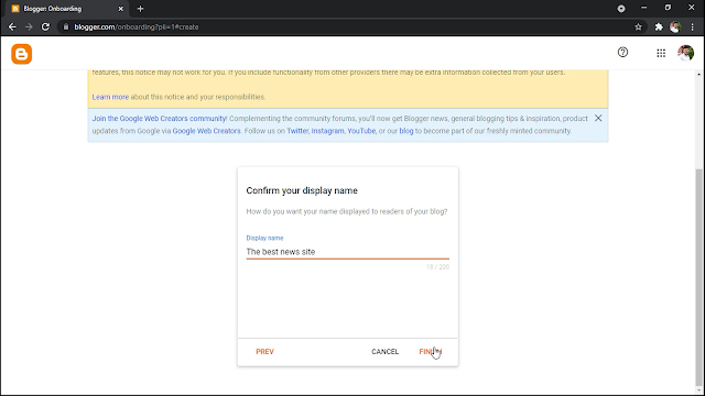 তারপর এখানেও জিমেইল দিয়ে সাইন ইন করুন। তার পর নিউ ব্লগ বা ক্রেট ব্লগ এ ক্লিক করুন। তারপর সাইট ডিসিক্রপশন দিবেন যেমন best site for health, sport, news etc. মানে আপনি সাইটে যে বিষয় নিয়ে কাজ করবেন তার সংক্ষিপ্ত বিবরণ। তারপর ভালো ও আনকমন একটি নাম দিন