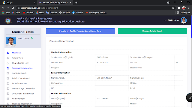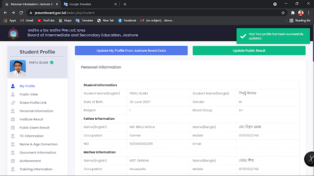 এখন Update My Profile From Jassore Board Date তে ক্লিক করি। ডাটা সেভ হলে ডানে গ্রীন সাকসেসফুল নোটিফিকেশন শো করবে।