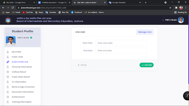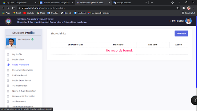 এখন আপনি যদি চান, যে আপনার দেওয়া তথ্য গুলো অপর কেউ দেখুক সে ক্ষেত্রে বামের অপশন থেকে শেযার প্রোফাইল লিংক এ ক্লিক করুন তাহলে নিচের মত আসবে।