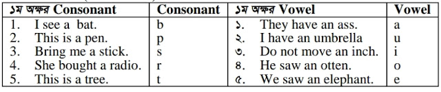 Rule-01: সাধারণত কোন word এর প্রথমে Consonant থাকলে (যেমন- bird), তার আগে a বসে (যেমন, a bat) এবং Vowel (a, e, I, O, U) থাকলে (যেমন- an ant) তার আগে an বসে (an ant)