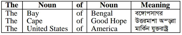 Rule-13: noun+of+noun এরূপে কোন নাম গঠিত হলে তার আগে the বসে। তখন গঠনটি হয়: