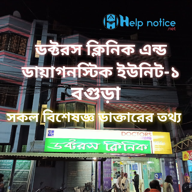 Doctors Clinic & Diagnostic Unit -1 ডক্টরস ক্লিনিক এন্ড ডায়াগনস্টিক ইউনিট-১ ঠিকানাঃ মফিজ পাগলার মোড়, সুত্রাপুর, বগুড়া। সিরিয়ালের জন্যঃ ০১৭১১-৮৯০৫০১