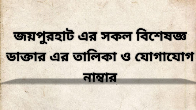 নাক, কান, গলা রোগ বিশেষজ্ঞ ও সার্জন, জয়পুরহাট | Nose, Ear, Throat Specialist and Surgeon Joypurhat