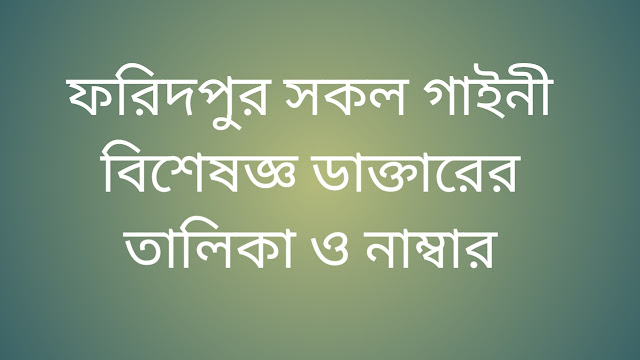 ফরিদপুর এর গাইনী বিশেষজ্ঞ ডাক্তারগণ এর তালিকা ………………………………………………………………………………………………. অধ্যাপক ডাঃ শিলা রানী দাসএমবিবিএস, ডিজিও, এমসিপিএস,এফসিপিএস (গাইনী এন্ড অবস্)স্ত্রীরোগ এবং ধাত্রীবিদ্যা